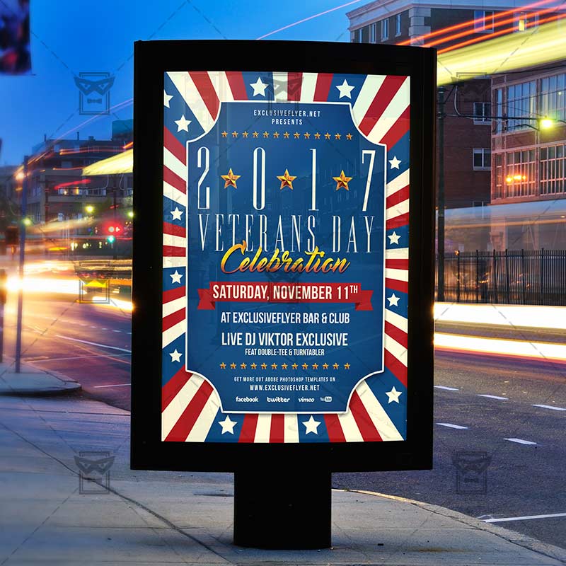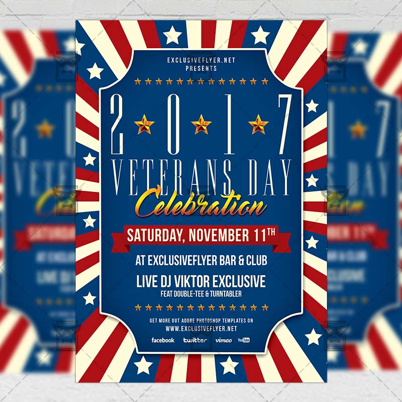 The Veterans Day is the exclusive Photoshop PSD flyer template designed by ExclusiveFlyer to promote your Veterans Day. This is a modern, stylish flyer and just be used for Veterans Day Celebration, Patriotic Party, Memorial Day, Labor Day Celebration etc.