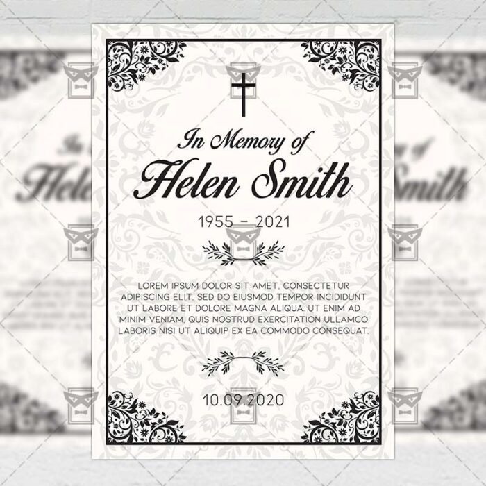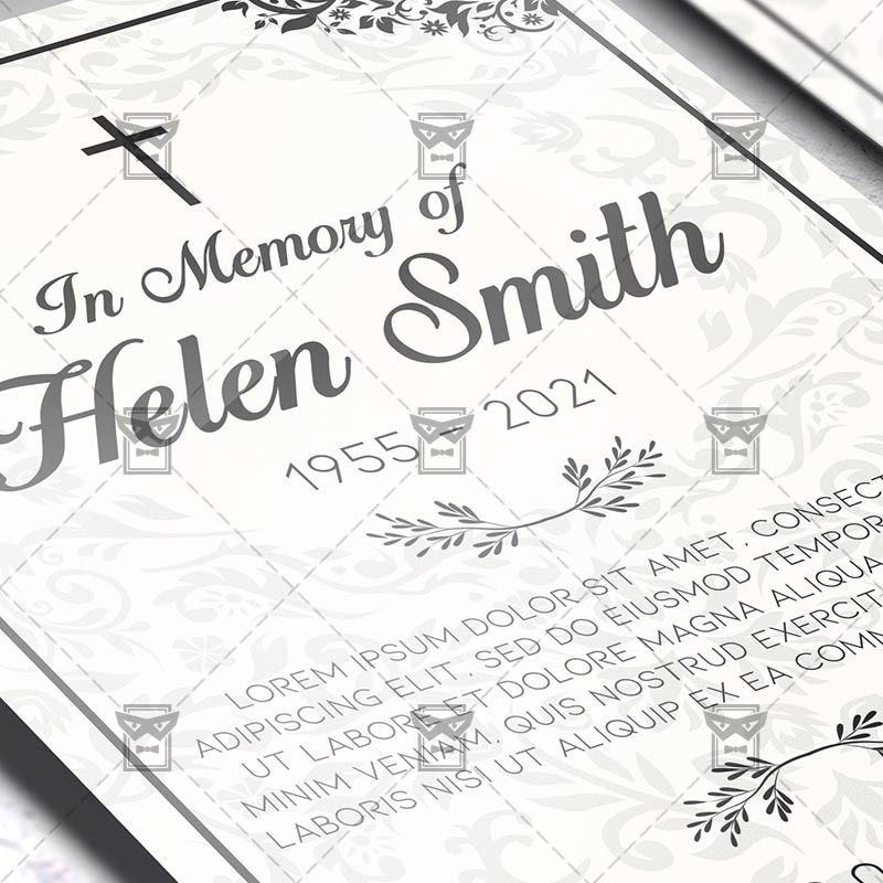 Vintage Funeral Card Flyer PSD Template for Adobe Photoshop