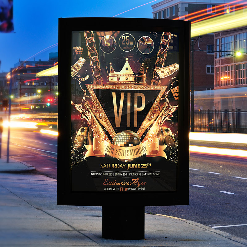The VIP Party is the exclusive Photoshop PSD flyer/poster template designed by ExclusiveFlyer to promote your VIP Party. This is a modern, stylish, orange flyer and just be used for a Deluxe Party or VIP Night. Dear customers! – you can also: Customize any flyers or Hire Us to create any unique product. Also, you can get unlimited access to all our templates. You can buy 1 month membership, 3 or 6 months membership or even 1 year membership plan and login on site, choose a design, click the button DOWNLOAD TEMPLATE and it’s yours. No hassle, no checkout! When you paid the template, you can find it in your personal account and of course you’ve got a message to your e-mail (maybe in spam) with link to download. Also, you can find all templates, which you buy, in your personal account! All of our flyers have a very good quality (300DPI). And it means that you just need to download one of them and make the necessary modifications such as replace the elements or choose the colors and start to invite your guests! You can order from us design of Banner Ad, Bi-Fold Brochure, Tri-Fold Brochure, Business Card, Logo, One-Sided Flyer, Two-sided Flyer or Postcard. All you need is to checkout and write us all information on our e-mail or skype. (order now). There are a lot of free flyer templates, free business card templates on our site! Also there are a lot of categories of flyers such as club flyers, seasonal flyers, sport flyers and also business flyers. You have a great choise on our site, so good luck! Don’t forget to follow our Facebook community, our page on Twitter, on Pinterest and on Tumblr and leave comments, cause we work for you! PSD is set up in 1275×1875 dimension (4″×6″ with 0,25″ bleed). The PSD file is very well organised, with color coded groups and layers named appropriately. Remember, all stock images of models and other people used only for demonstration all charms of the flyer and don’t included in the download!