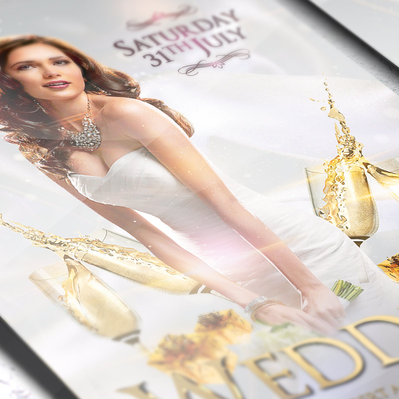 The Wedding is the exclusive Photoshop PSD flyer template designed by ExclusiveFlyer to promote your Wedding Day. This is a modern, stylish flyer and just be used for a Wedding Party or Hen-party etc. Dear customers! – you can also: Customize any flyers or Hire Us to create any unique product. Also, you can get unlimited access to all our templates. You can buy 1 month membership, 3 or 6 months membership or even 1 year membership plan and login on site, choose a design, click the button DOWNLOAD TEMPLATE and it’s yours. No hassle, no checkout! When you paid the template, you can find it in your personal account and of course you’ve got a message to your e-mail (maybe in spam) with link to download. Also, you can find all templates, which you buy, in your personal account! All of our flyers have a very good quality (300DPI). And it means that you just need to download one of them and make the necessary modifications such as replace the elements or choose the colors and start to invite your guests! You can order from us design of Banner Ad, Bi-Fold Brochure, Tri-Fold Brochure, Business Card, Logo, One-Sided Flyer, Two-sided Flyer or Postcard. All you need is to checkout and write us all information on our e-mail or skype. (order now). There are a lot of free flyer templates, free business card templates on our site! Also there are a lot of categories of flyers such as club flyers, seasonal flyers, sport flyers and also business flyers. You have a great choise on our site, so good luck! Don’t forget to follow our Facebook community, our page on Twitter, on Pinterest and on Tumblr and leave comments, cause we work for you! PSD is set up in 1275×1875 dimension (4″×6″ with 0,25″ bleed). The PSD file is very well organised, with color coded groups and layers named appropriately. Remember, all stock images of models and other people used only for demonstration all charms of the flyer and don’t included in the download!