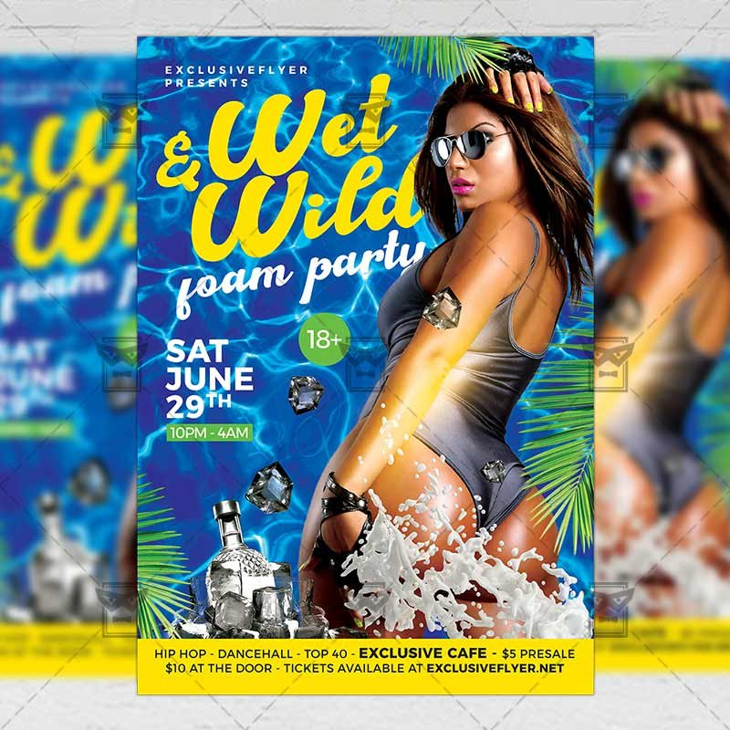 Wet and Wild Party an exclusive PSD flyer template for Adobe Photoshop designed by our best graphic designers to facilitate your task in promoting your business. With our readymade Seasonal flyer in psd format you can invite you customers and guest to your event or to the best Summer Party, Summer Vibes, Summer Jam Night, Foam Party or Summer Bash in their lives.
