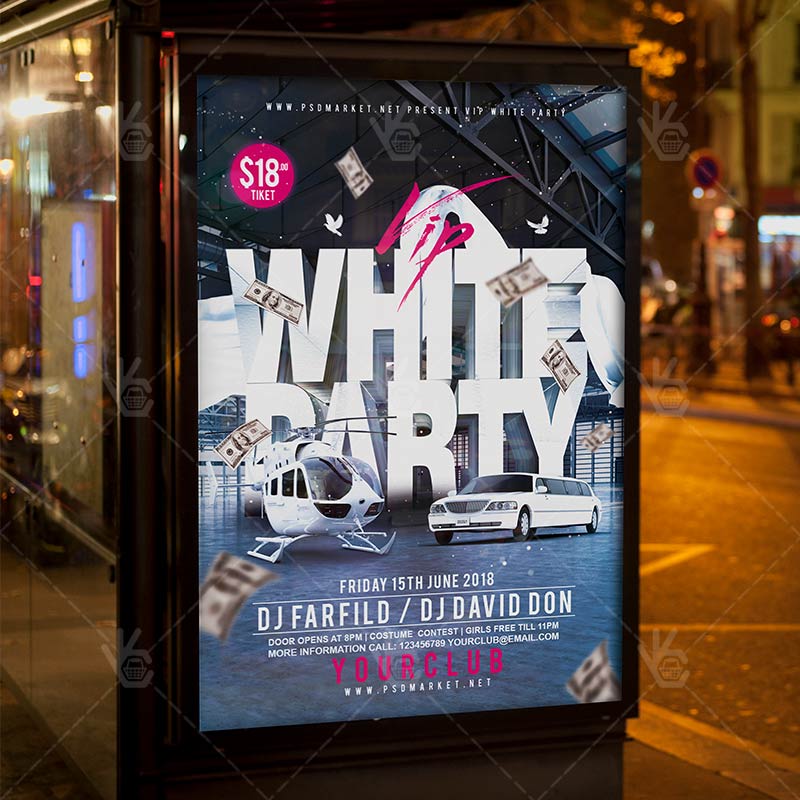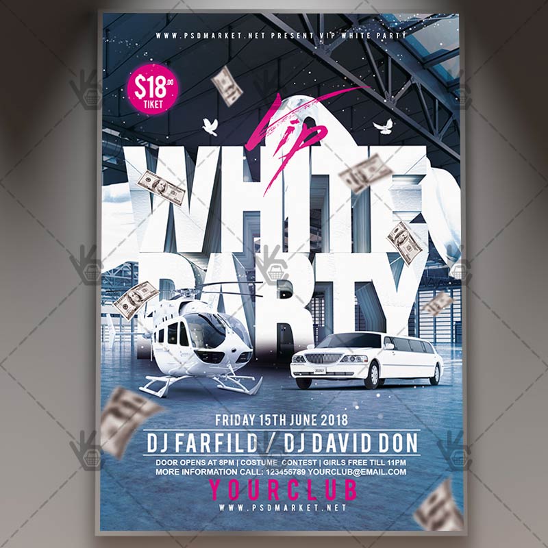 White Party is a simply modern flyer design by PSDmarket Team to be used with Photoshop CS3 and higher. Save your time and use it for business or for your clients! This can be use for White Party Night, White Party Lounge, White Party Fridays, VIP White Party, Black And White Party, White Sensation and others.