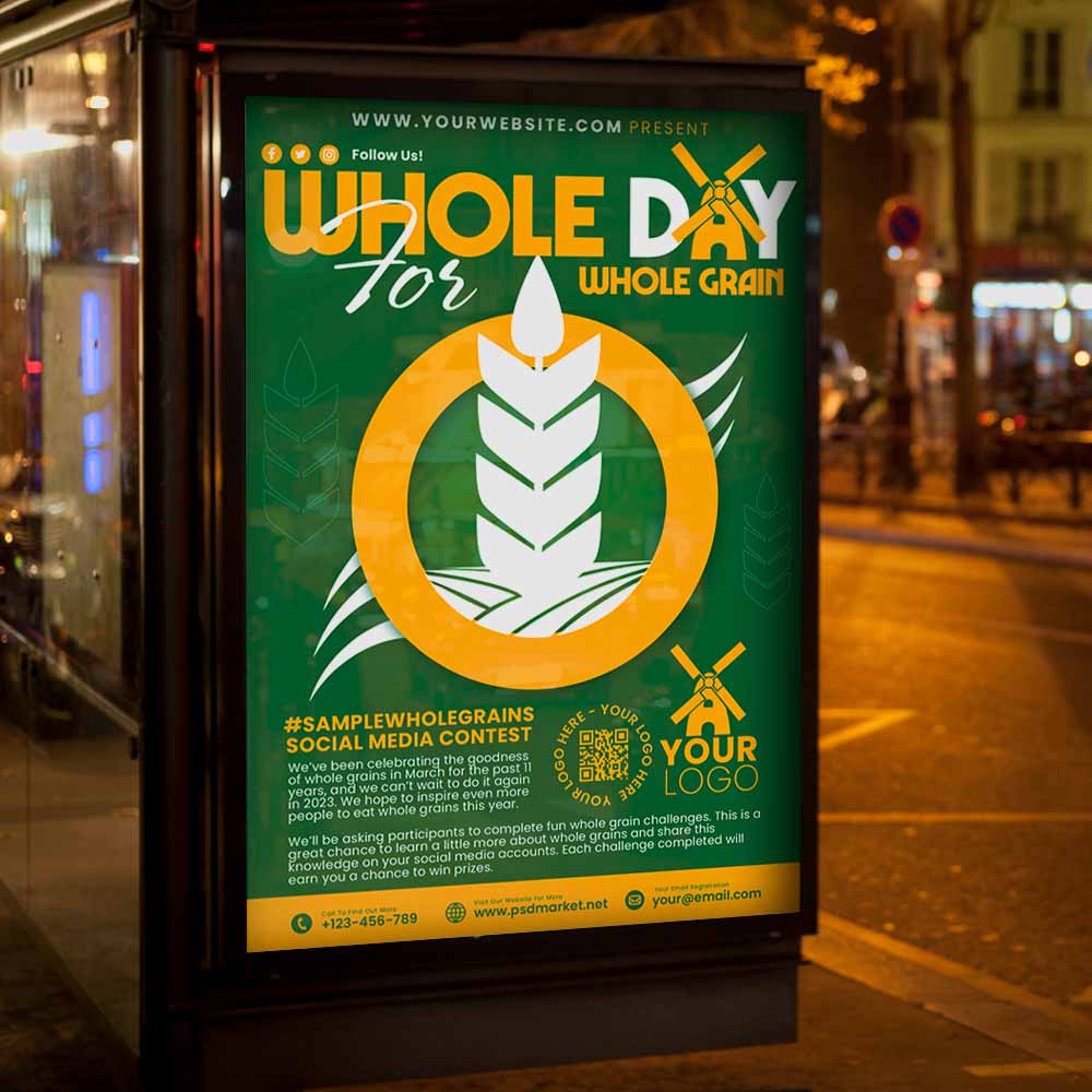 Whole Day For Whole Grain Card Printable Template Flyer PSD
