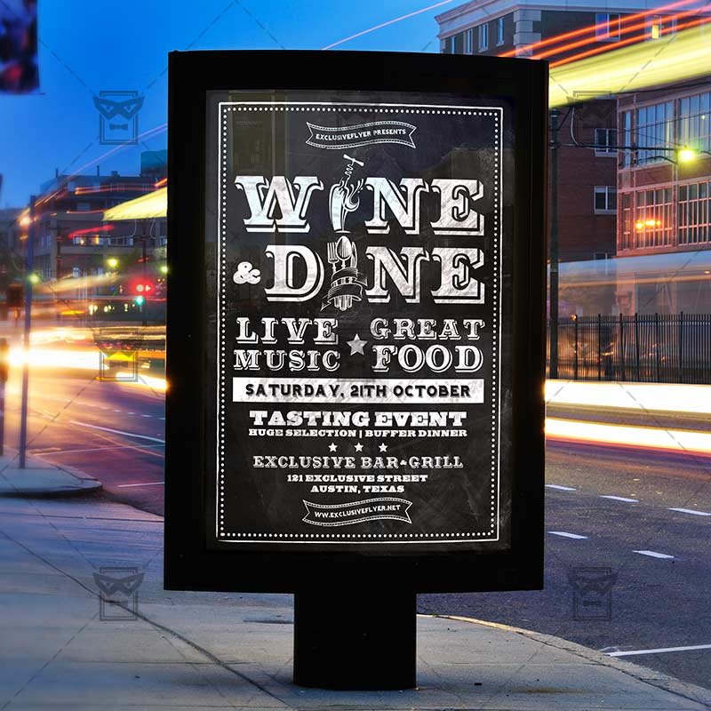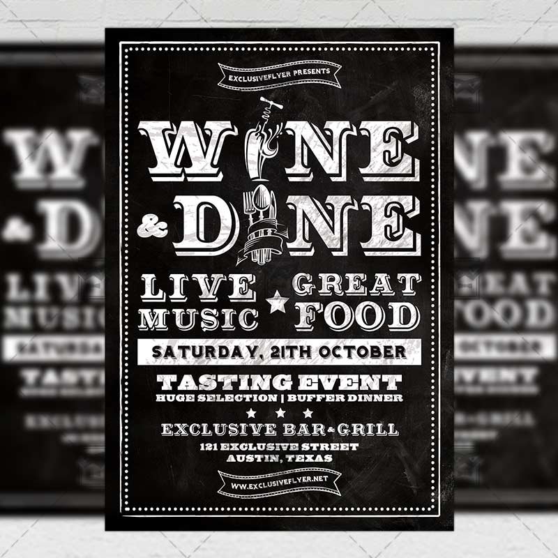 The Wine and Dine is the exclusive Photoshop PSD flyer template designed by ExclusiveFlyer to promote your Wine and Dine Party. This is a modern, stylish flyer and just be used for Restaurant Promotion, Happy Hours, Food Promo, Wine Party etc.