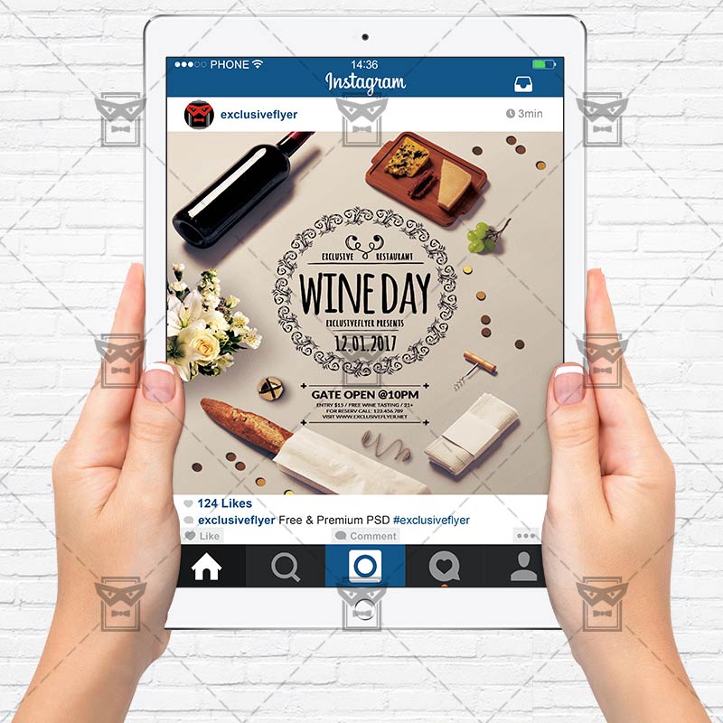 The Wine Day is the exclusive Photoshop PSD flyer template designed by ExclusiveFlyer to promote your Wine Day. This is a modern, stylish flyer and just be used for a Wine Night, Wine Festival etc. Dear customers! – you can also: Customize any flyers or Hire Us to create any unique product. Also, you can get unlimited access to all our templates. You can buy 1 month membership, 3 or 6 months membership or even 1 year membership plan and login on site, choose a design, click the button DOWNLOAD TEMPLATE and it’s yours. No hassle, no checkout! When you paid the template, you can find it in your personal account and of course you’ve got a message to your e-mail (maybe in spam) with link to download. Also, you can find all templates, which you buy, in your personal account! All of our flyers have a very good quality (300DPI). And it means that you just need to download one of them and make the necessary modifications such as replace the elements or choose the colors and start to invite your guests! You can order from us design of Banner Ad, Bi-Fold Brochure, Tri-Fold Brochure, Business Card, Logo, One-Sided Flyer, Two-sided Flyer or Postcard. All you need is to checkout and write us all information on our e-mail or skype. (order now). There are a lot of free flyer templates, free business card templates on our site! Also there are a lot of categories of flyers such as club flyers, seasonal flyers, sport flyers and also business flyers. You have a great choise on our site, so good luck! Don’t forget to follow our Facebook community, our page on Twitter, on Pinterest and on Tumblr and leave comments, cause we work for you! PSD is set up in 1275×1875 dimension (4” x 6” with 0,25” bleed). The PSD file is very well organised, with color coded groups and layers named appropriately. Remember, all stock images of models and other people used only for demonstration all charms of the flyer and don’t included in the download!
