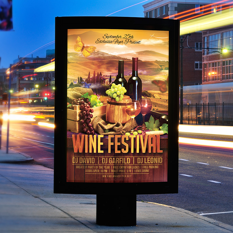 The Wine Festival is the exclusive Photoshop PSD flyer template designed by ExclusiveFlyer to promote your Wine Festival Party. This is a modern, stylish, wine flyer and just be used for a Wine Night or Wine Promotion or Tasting Wine Night etc. Dear customers! – you can also: Customize any flyers or Hire Us to create any unique product. Also, you can get unlimited access to all our templates. You can buy 1 month membership, 3 or 6 months membership or even 1 year membership plan and login on site, choose a design, click the button DOWNLOAD TEMPLATE and it’s yours. No hassle, no checkout! When you paid the template, you can find it in your personal account and of course you’ve got a message to your e-mail (maybe in spam) with link to download. Also, you can find all templates, which you buy, in your personal account! All of our flyers have a very good quality (300DPI). And it means that you just need to download one of them and make the necessary modifications such as replace the elements or choose the colors and start to invite your guests! You can order from us design of Banner Ad, Bi-Fold Brochure, Tri-Fold Brochure, Business Card, Logo, One-Sided Flyer, Two-sided Flyer or Postcard. All you need is to checkout and write us all information on our e-mail or skype. (order now). There are a lot of free flyer templates, free business card templates on our site! Also there are a lot of categories of flyers such as club flyers, seasonal flyers, sport flyers and also business flyers. You have a great choise on our site, so good luck! Don’t forget to follow our Facebook community, our page on Twitter, on Pinterest and on Tumblr and leave comments, cause we work for you! PSD is set up in 1275×1875 dimension (4″×6″ with 0,25″ bleed). The PSD file is very well organised, with color coded groups and layers named appropriately. Remember, all stock images of models and other people used only for demonstration all charms of the flyer and don’t included in the download!