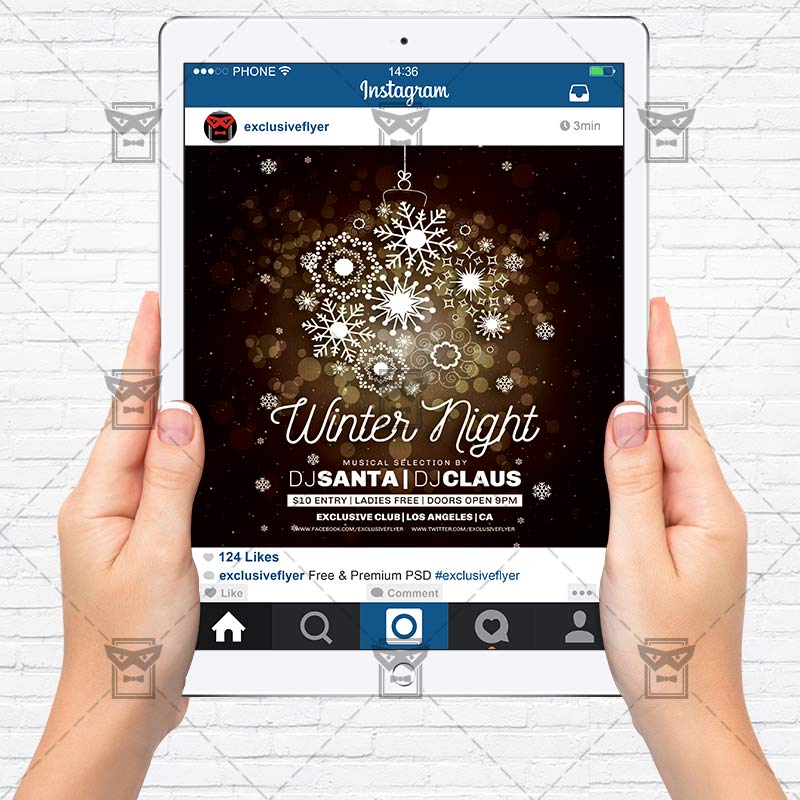 The Winter Night is the exclusive Photoshop PSD flyer template designed by ExclusiveFlyer to promote your Winter Night. This is a modern, stylish flyer and just be used for a Christmas Party, Winter Party, Snow Night etc. Dear customers! – you can also: Customize any flyers or Hire Us to create any unique product. Also, you can get unlimited access to all our templates. You can buy 1 month membership, 3 or 6 months membership or even 1 year membership plan and login on site, choose a design, click the button DOWNLOAD TEMPLATE and it’s yours. No hassle, no checkout! When you paid the template, you can find it in your personal account and of course you’ve got a message to your e-mail (maybe in spam) with link to download. Also, you can find all templates, which you buy, in your personal account! All of our flyers have a very good quality (300DPI). And it means that you just need to download one of them and make the necessary modifications such as replace the elements or choose the colors and start to invite your guests! You can order from us design of Banner Ad, Bi-Fold Brochure, Tri-Fold Brochure, Business Card, Logo, One-Sided Flyer, Two-sided Flyer or Postcard. All you need is to checkout and write us all information on our e-mail or skype. (order now). There are a lot of free flyer templates, free business card templates on our site! Also there are a lot of categories of flyers such as club flyers, seasonal flyers, sport flyers and also business flyers. You have a great choise on our site, so good luck! Don’t forget to follow our Facebook community, our page on Twitter, on Pinterest and on Tumblr and leave comments, cause we work for you! PSD is set up in 1275×1875 dimension (4” x 6” with 0,25” bleed). The PSD file is very well organised, with color coded groups and layers named appropriately. Remember, all stock images of models and other people used only for demonstration all charms of the flyer and don’t included in the download!