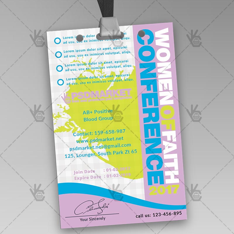 Women Conference is a simply modern id card / badge design by PSDmarket Team to be used with Photoshop CS3 and higher. Save your time and use it for business or for your clients! This can be use for Christian Concert, Women Party , Christian Party, Christian Conference, Church Conference or Anniversary and others.