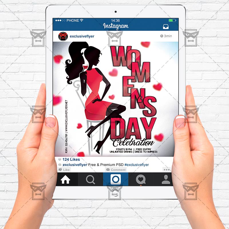 The Womens Day Celebration is the exclusive Photoshop PSD flyer template designed by ExclusiveFlyer to promote your Womens Day Party. This is a modern, stylish flyer and just be used for a International Womens Day, Ladies Night, Girls Night Out, Pink Party etc. Dear customers! – you can also: Customize any flyers or Hire Us to create any unique product. Also, you can get unlimited access to all our templates. You can buy 1 month membership, 3 or 6 months membership or even 1 year membership plan and login on site, choose a design, click the button DOWNLOAD TEMPLATE and it’s yours. No hassle, no checkout! When you paid the template, you can find it in your personal account and of course you’ve got a message to your e-mail (maybe in spam) with link to download. Also, you can find all templates, which you buy, in your personal account! All of our flyers have a very good quality (300DPI). And it means that you just need to download one of them and make the necessary modifications such as replace the elements or choose the colors and start to invite your guests! You can order from us design of Banner Ad, Bi-Fold Brochure, Tri-Fold Brochure, Business Card, Logo, One-Sided Flyer, Two-sided Flyer or Postcard. All you need is to checkout and write us all information on our e-mail or skype. (order now). There are a lot of free flyer templates, free business card templates on our site! Also there are a lot of categories of flyers such as club flyers, seasonal flyers, sport flyers and also business flyers. You have a great choise on our site, so good luck! Don’t forget to follow our Facebook community, our page on Twitter, on Pinterest and on Tumblr and leave comments, cause we work for you! PSD is set up in 1275×1875 dimension (4” x 6” with 0,25” bleed). The PSD file is very well organised, with color coded groups and layers named appropriately. Remember, all stock images of models and other people used only for demonstration all charms of the flyer and don’t included in the download!