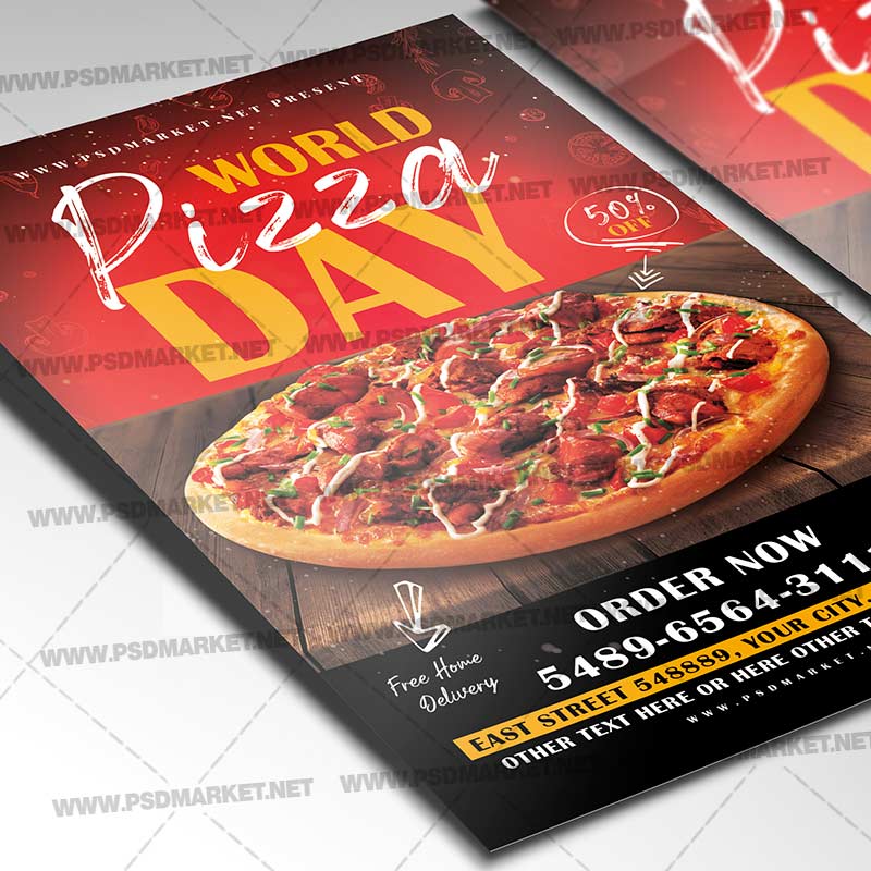 World Pizza Day Template Flyer PSD is a simply modern flyer design by PSDmarket Team to be used with Adobe Photoshop CS3 and higher. Save your time and use it for business or for your clients! This can be use for Pizza Delivery, National Pizza Day 2021, National Pizza Day 2022, Delivery Pizza, pizza day template, national Pizza Day, national pizza day 2021, national cheese pizza day pizza hut, national pizza day deals, pizza hut pizza of the day, 40 pizzas in 30 days, international pizza day, national pizza, pizza day 2021, valentines pizza, national cheese pizza day, world pizza day, valentines day pizza, international pizza day 2021 and others.