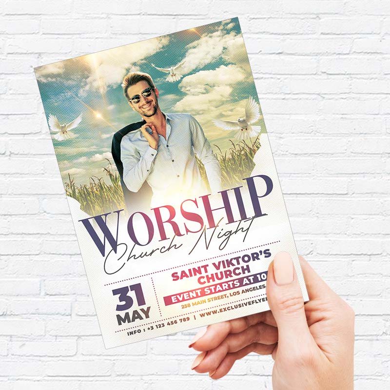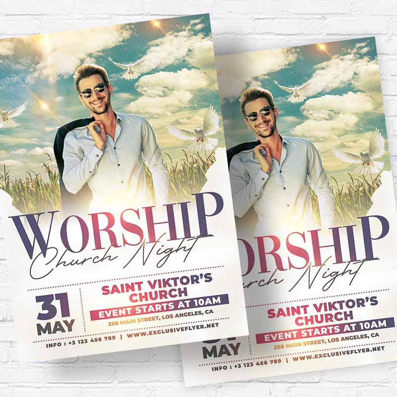 Worship Church PSD Template Template an exclusive PSD flyer template for Adobe Photoshop designed by our best graphic designers to facilitate your task in promoting your business. This psd poster/flyer is the best choice for Worship Church Night Music, Church Event, Gospel Pray, Bible Study Event, Worship Night. With our readymade Worship Church PSD Template flyer in psd format you can invite you customers and guest to your event with a minimum of efforts and time.