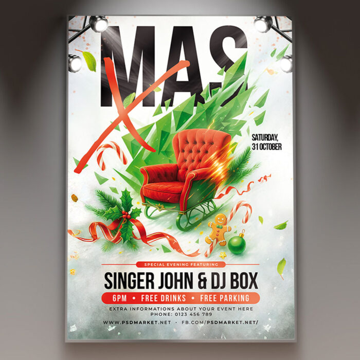 Get Your X-Mas Club 2026 Flyer PSD Template Today!Start promoting your next sensational “**X-Mas Club 2026 Event**” now with our unique and action-packed flyer template. Download it today and get ready to host the biggest holiday dance party! |