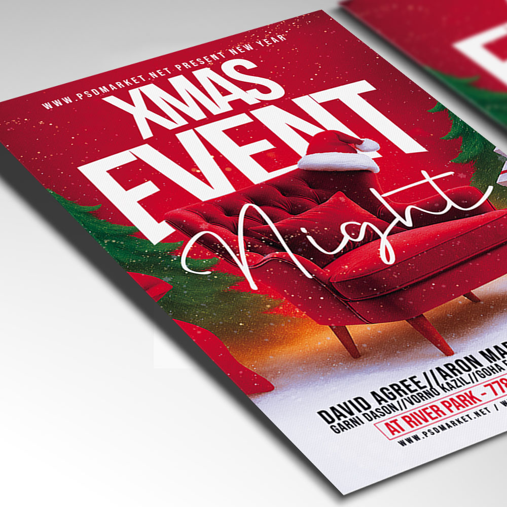 X-Mas Flyer PSD TemplateSpread the universal holiday cheer with a stunning design! Our timeless and versatile **X-Mas Flyer PSD Template** is the ideal design tool for promoting any kind of Christmas event—from a cozy family gathering and a neighborhood festive market to a major club night or corporate gala. This professional PSD template offers full customizability to ensure your event looks as enchanting and inviting as the season itself, regardless of the year. If you’re looking to create an irresistible invitation that screams “**Celebrate the Joy of Christmas**,” “**Your Ultimate Holiday Party**,” and “**The Perfect Festive Atmosphere**,” this flyer template is engineered to draw a huge, enthusiastic crowd ready to celebrate. Expect to see striking visuals, often incorporating energetic elements like twinkling lights, snowy scenes, classic Christmas motifs (ornaments, holly), elegant, festive typography, and a warm, traditional holiday color scheme that perfectly captures the joyful and communal spirit of an **X-Mas Event**. This template is all about setting a welcoming, high-quality, and memorable mood, making your event the perfect destination for holiday celebrations. The **X-Mas Flyer PSD Template** offers a highly adaptable and professional layout (as a PSD file), ensuring you can clearly communicate all the essential details of your celebration while perfectly maintaining its festive atmosphere. You can easily customize the text fields to include the specific date and time of your event, the venue location, any special entry requirements (e.g., ticket purchase details, dress code), and information about featured entertainment (e.g., a **caroling group**, a festive DJ set, Santa appearance), details on the **special holiday menu** or **drink specials** (e.g., mulled wine, hot chocolate bar), or information about a gift exchange or a raffle, all presented in a clear and appealing way. Add an enticing description of what attendees can expect, perhaps highlighting opportunities for a special **VIP “Gingerbread Lounge”**, a themed photo booth, or simply mingling in a glamorous, joyous atmosphere. And of course, include clear contact information or prominent social media handles for further engagement and ticket sales. Being a PSD template, it offers exciting options to incorporate additional dynamic graphics like decorative borders, metallic effects, or subtle patterned overlays, or to adjust the impactful color palette (often deep reds, forest greens, gold, and white/silver) to perfectly match your brand’s aesthetic or the event’s specific vibe. This lets you create a truly unique and memorable promotional piece that looks as festive and exciting as your event feels. Engineered for maximum reach, the **X-Mas Flyer PSD Template** is designed to be both print-ready for stunning physical distribution and seamlessly optimized for digital sharing. This ensures your exciting invitation reaches a wide and enthusiastic audience. Create eye-catching physical flyers to distribute at local community centers, and effortlessly share the flyer digitally through various social media channels with engaging captions that highlight the holiday fun, email announcements that build anticipation, and online event listings that attract revelers and guests. This dual functionality helps to maximize visibility and create significant buzz around your X-Mas Event. By utilizing this distinctive and attention-grabbing flyer template, you’re not just announcing a party; you’re creating an invitation that broadcasts pure, festive joy and promises an experience filled with great music, holiday cheer, and unforgettable memories, making your “**X-Mas Event**” the ultimate destination to celebrate the season. Grab this template today and get ready to spread the holiday joy! — Features of the X-Mas Flyer PSD Template