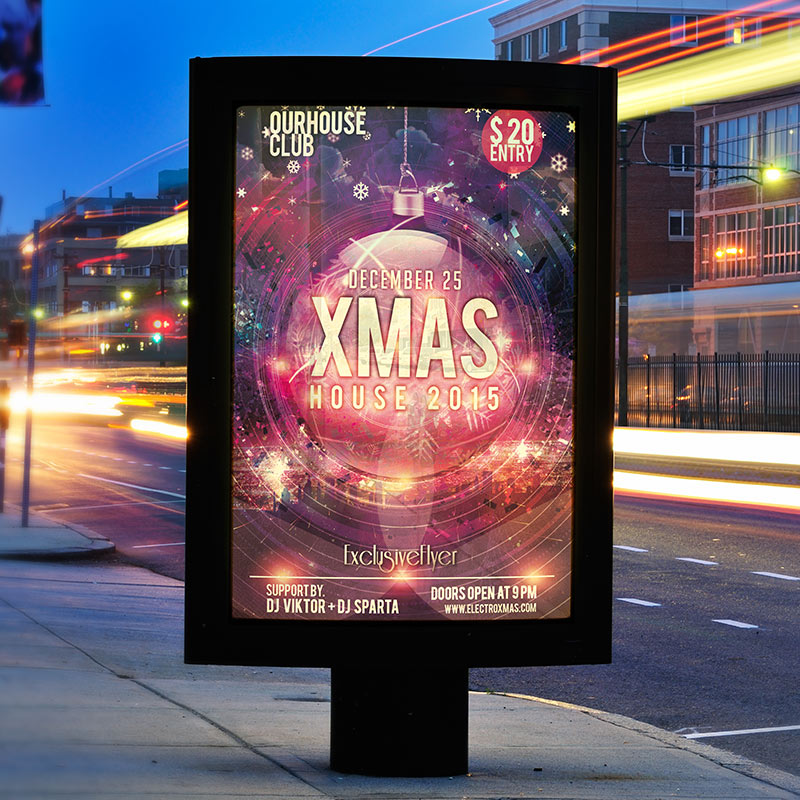 The Xmas House Party is the exclusive Photoshop PSD flyer template designed by ExclusiveFlyer to promote your Xmas House. This is a modern, stylish flyer and just be used for a New Year Party or Xmas Night. Dear customers! – you can also: Customize any flyers or Hire Us to create any unique product. Also, you can get unlimited access to all our templates. You can buy 1 month membership, 3 or 6 months membership or even 1 year membership plan and login on site, choose a design, click the button DOWNLOAD TEMPLATE and it’s yours. No hassle, no checkout! When you paid the template, you can find it in your personal account and of course you’ve got a message to your e-mail (maybe in spam) with link to download. Also, you can find all templates, which you buy, in your personal account! All of our flyers have a very good quality (300DPI). And it means that you just need to download one of them and make the necessary modifications such as replace the elements or choose the colors and start to invite your guests! You can order from us design of Banner Ad, Bi-Fold Brochure, Tri-Fold Brochure, Business Card, Logo, One-Sided Flyer, Two-sided Flyer or Postcard. All you need is to checkout and write us all information on our e-mail or skype. (order now). There are a lot of free flyer templates, free business card templates on our site! Also there are a lot of categories of flyers such as club flyers, seasonal flyers, sport flyers and also business flyers. You have a great choise on our site, so good luck! Don’t forget to follow our Facebook community, our page on Twitter, on Pinterest and on Tumblr and leave comments, cause we work for you! PSD is set up in 1275×1875 dimension (4″×6″ with 0,25″ bleed). The PSD file is very well organised, with color coded groups and layers named appropriately. Remember, all stock images of models and other people used only for demonstration all charms of the flyer and don’t included in the download!