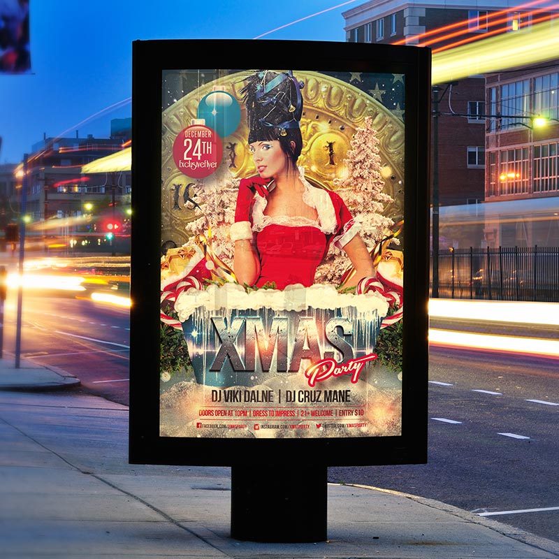 The Xmas Party Night is the exclusive Photoshop PSD flyer template designed by ExclusiveFlyer to promote your Xmas Party Night. This is a modern, stylish flyer and just be used for a Xmas Night or New Year Night. Dear customers! – you can also: Customize any flyers or Hire Us to create any unique product. Also, you can get unlimited access to all our templates. You can buy 1 month membership, 3 or 6 months membership or even 1 year membership plan and login on site, choose a design, click the button DOWNLOAD TEMPLATE and it’s yours. No hassle, no checkout! When you paid the template, you can find it in your personal account and of course you’ve got a message to your e-mail (maybe in spam) with link to download. Also, you can find all templates, which you buy, in your personal account! All of our flyers have a very good quality (300DPI). And it means that you just need to download one of them and make the necessary modifications such as replace the elements or choose the colors and start to invite your guests! You can order from us design of Banner Ad, Bi-Fold Brochure, Tri-Fold Brochure, Business Card, Logo, One-Sided Flyer, Two-sided Flyer or Postcard. All you need is to checkout and write us all information on our e-mail or skype. (order now). There are a lot of free flyer templates, free business card templates on our site! Also there are a lot of categories of flyers such as club flyers, seasonal flyers, sport flyers and also business flyers. You have a great choise on our site, so good luck! Don’t forget to follow our Facebook community, our page on Twitter, on Pinterest and on Tumblr and leave comments, cause we work for you! PSD is set up in 1275×1875 dimension (4″×6″ with 0,25″ bleed). The PSD file is very well organised, with color coded groups and layers named appropriately. Remember, all stock images of models and other people used only for demonstration all charms of the flyer and don’t included in the download!