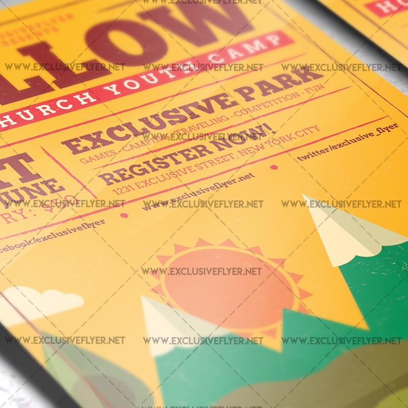The Youth Camp is the exclusive Photoshop PSD flyer template designed by ExclusiveFlyer to promote your Youth Camp. This is a modern, stylish flyer and just be used for a Kids Summer, Kids Camp, Camping, Summer Camp Fest, Holy Church Youth Camp etc.