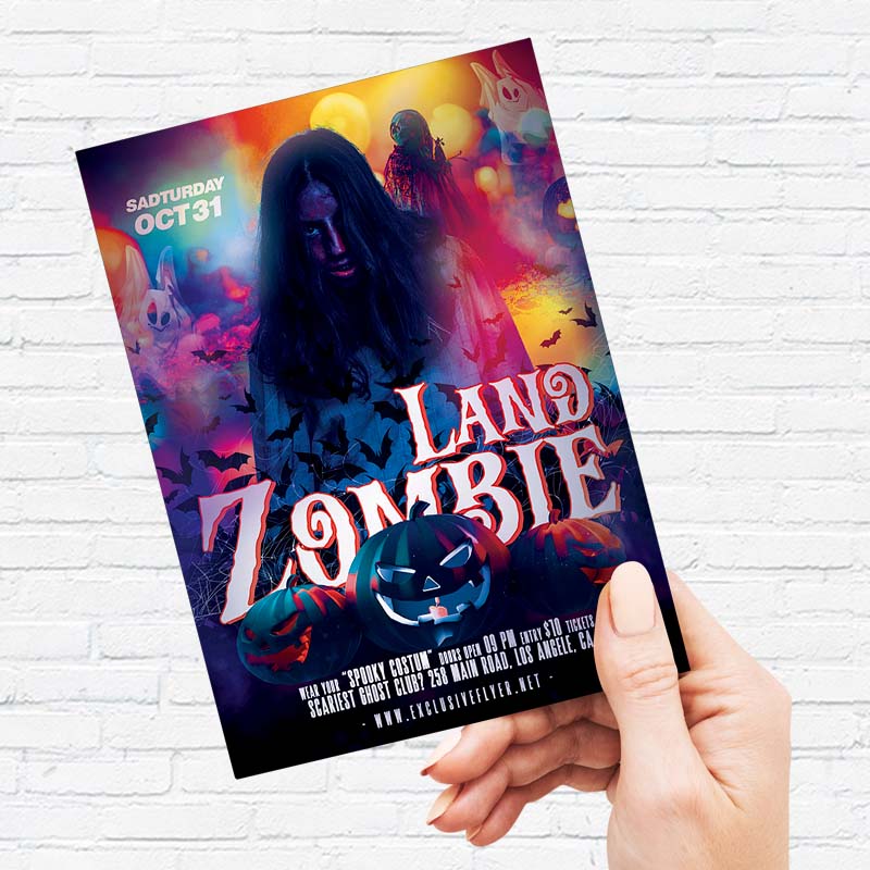 Zombie Land A5 Flyer PSD Template for Adobe Photoshop